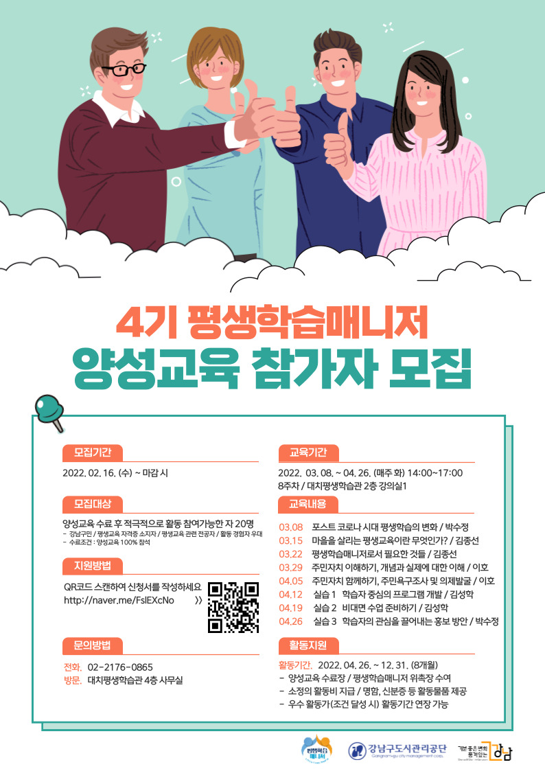 강남구와 평생학습으로 함께 성장할 4기 평생학습매니저를 모집합니다.