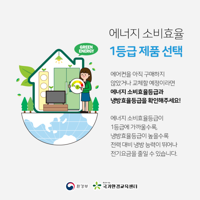 - 에어컨을 아직 구매하지 않았거나 교체할 예정이라면 에너지 소비효율등급과 냉방효율등급을 확인해주세요!