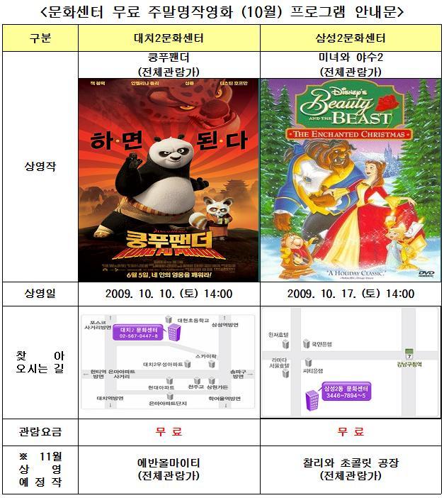 문화센터 무료 주말명작영화 (10월) 프로그램 안내