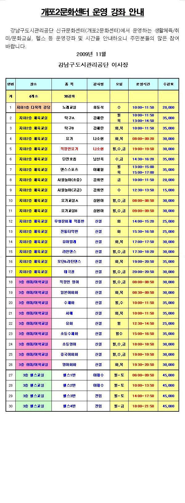 문화센터 무료 주말명작영화 (11월) 프로그램 안내