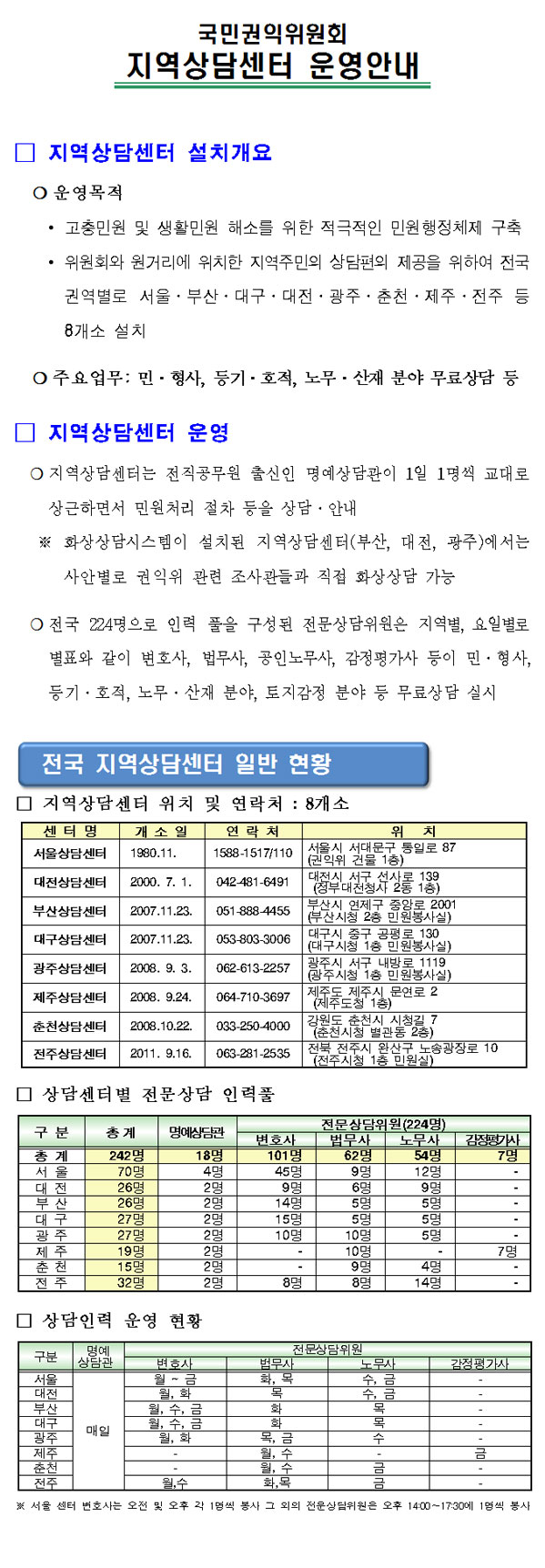 국민권익위원회 지역상담센터 운영안내