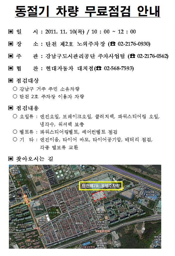 동절기 차량 무료점검 안내