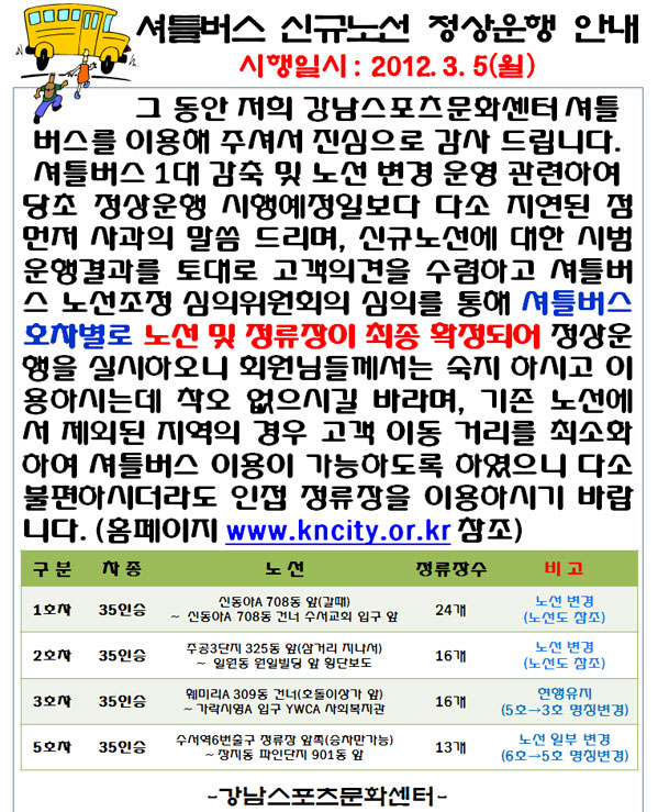 셔틀버스 신규노선 정상운행 안내