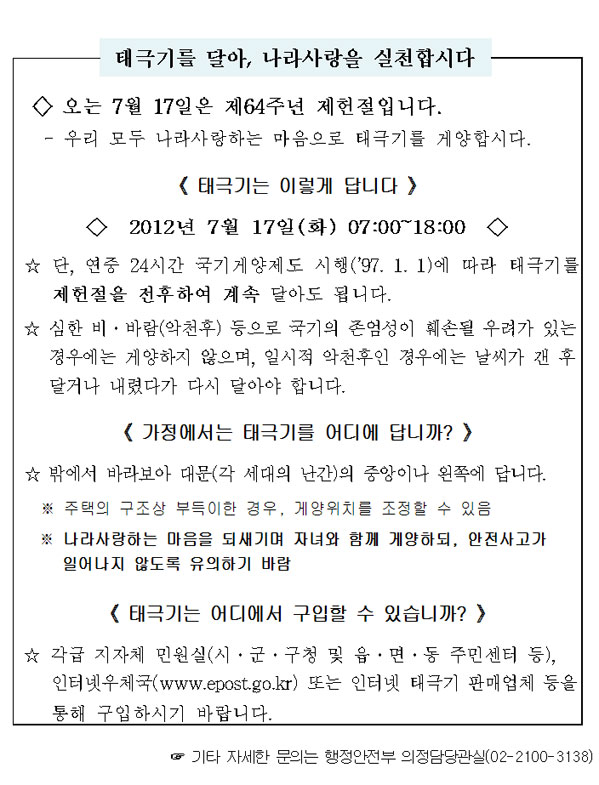태극기를 달아, 나라사항을 실천합시다