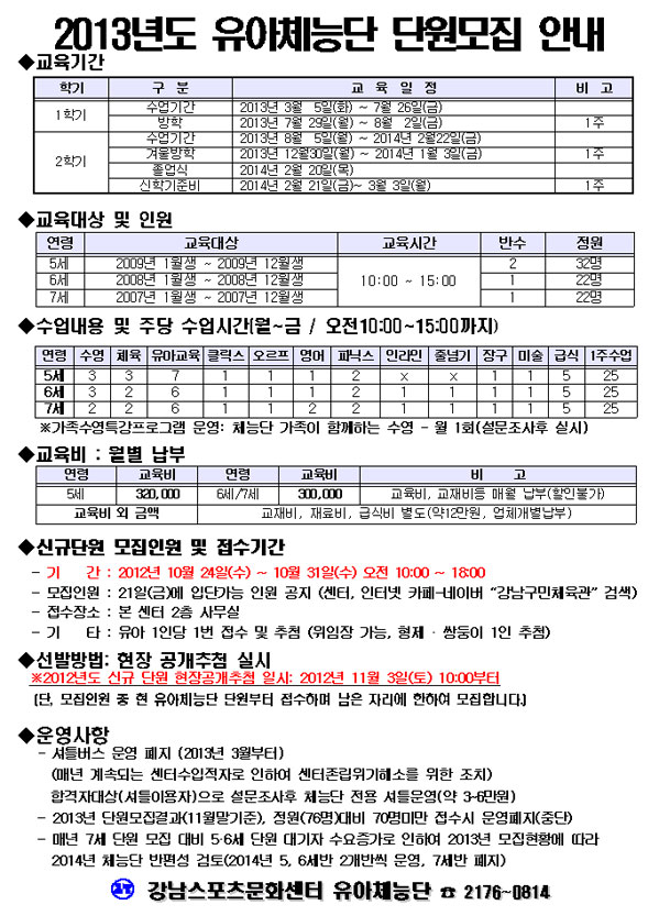 강남스포츠문화센터 셔틀버스 노선(1호차) 일부변경 안내