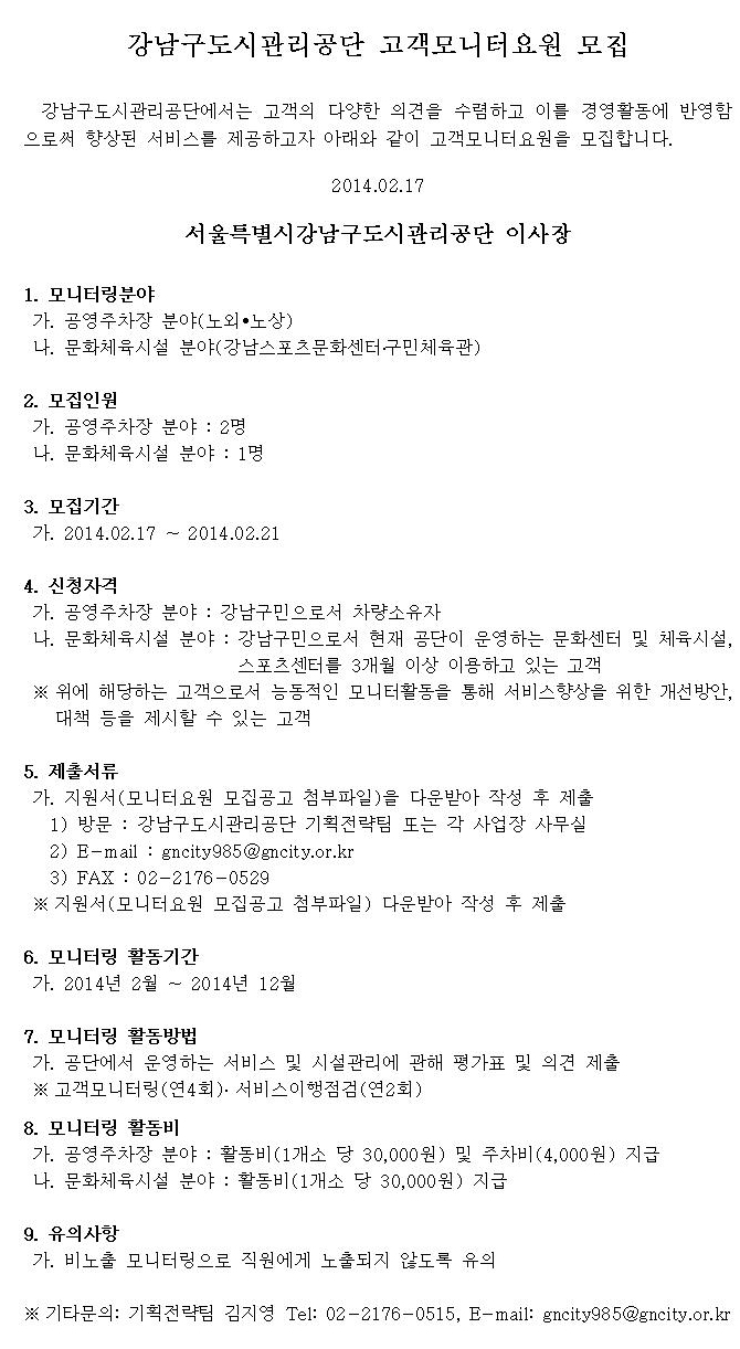 2014년 강남구도시관리공단 고객모니터요원 모집