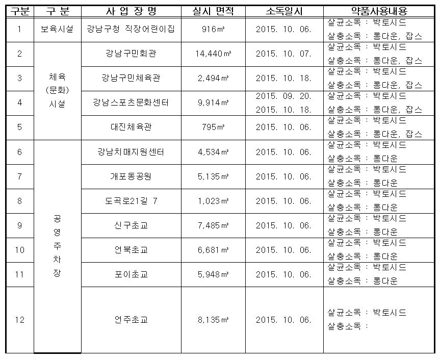 2. 소독기간 : 2015. 9. 20. 〜 2015. 10. 18.