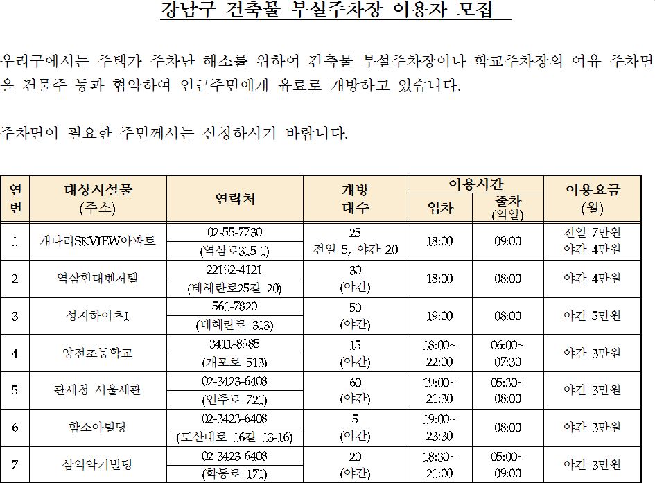 거주자(업무자) 빈 주차장 사용(신청)안내
