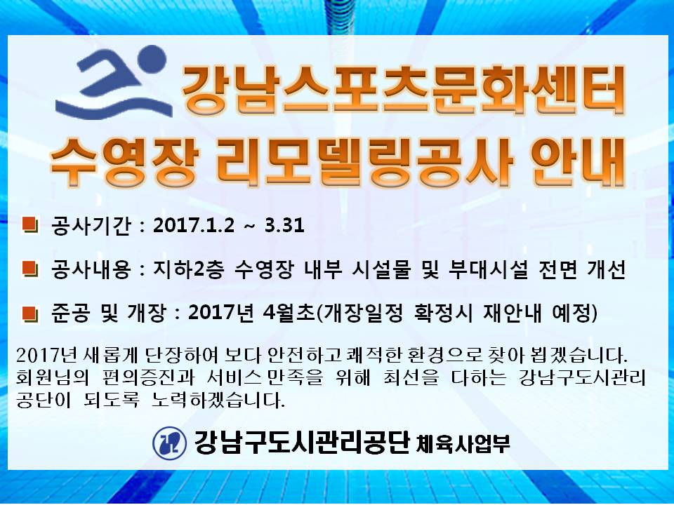 강남스포츠문화센터 수영장 리모델링공사 안내