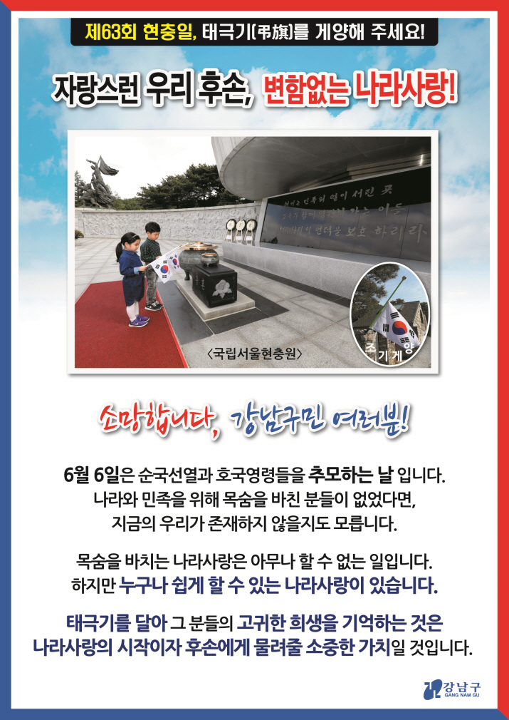 제63회 현충일, 태극기를 게양해주세요!