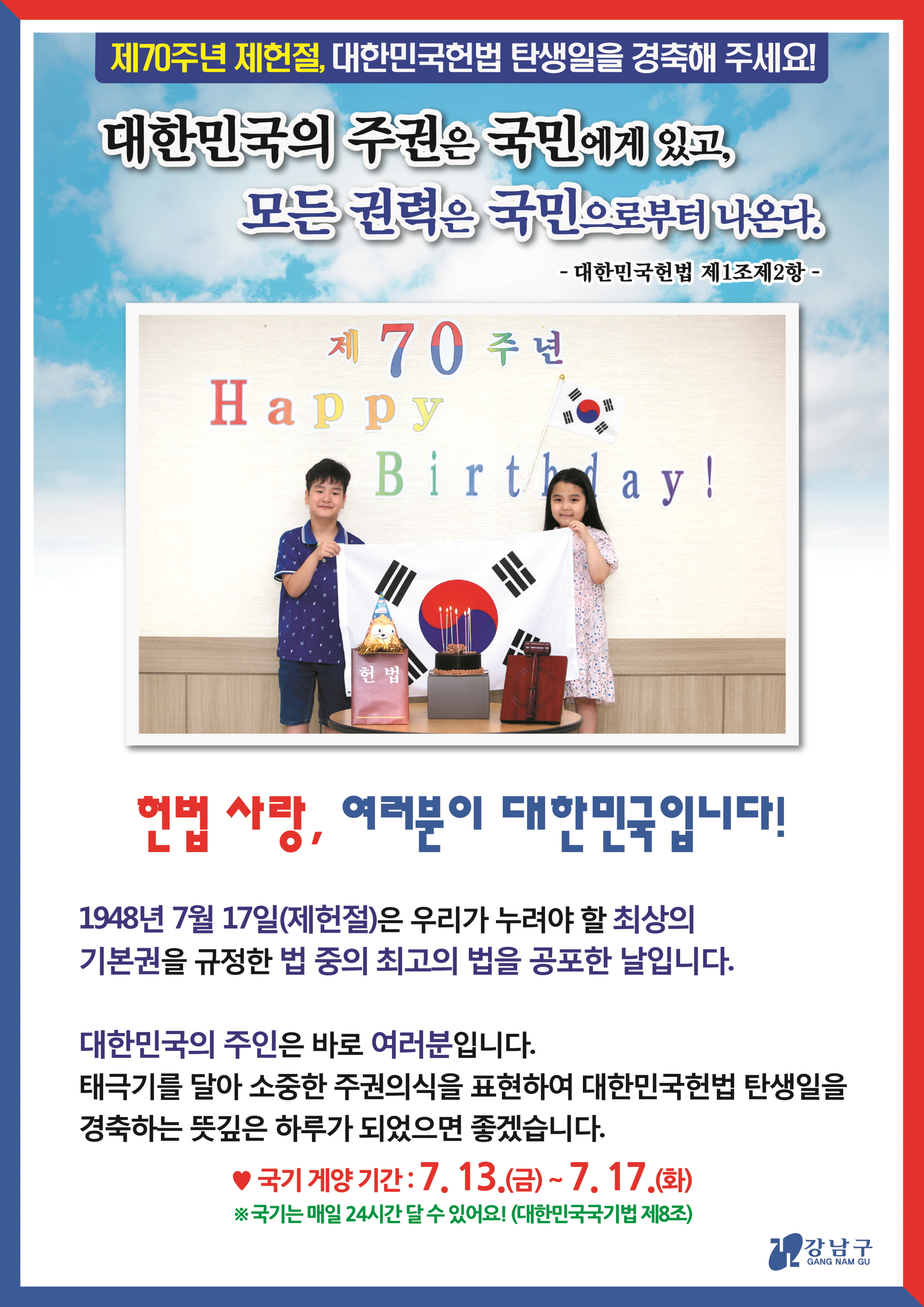 제70주년 제헌절, 대한민국헌법 탄생일을 경축해주세요