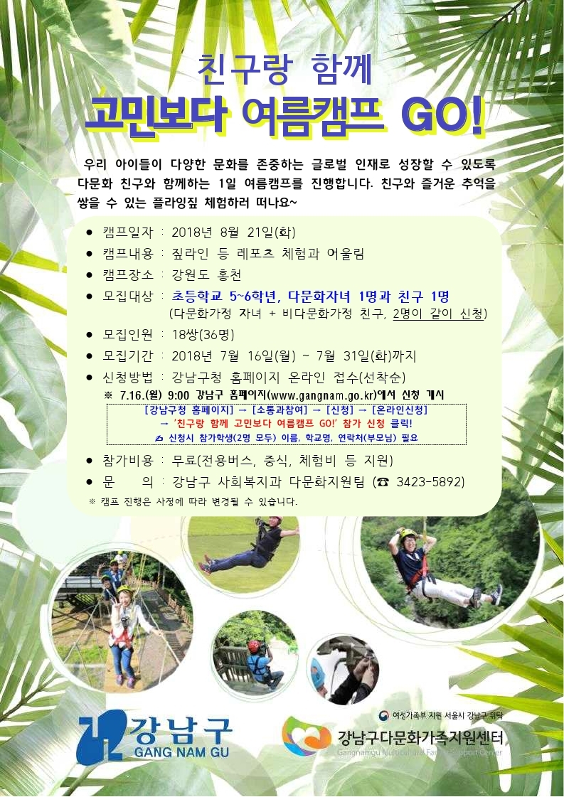 신청방법 : 강남구청 홈페이지 온라인 접수(선착순)