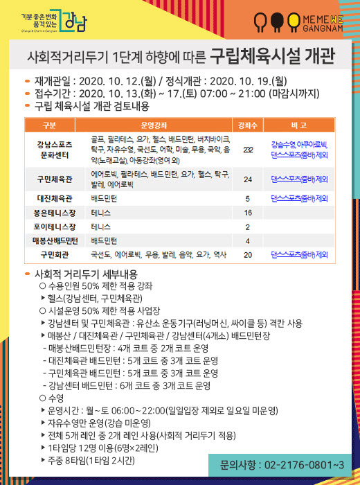 강남스포츠문화센터 02-2176-0801