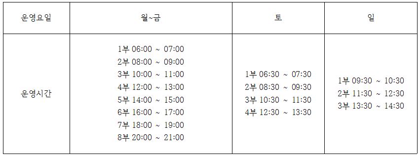 □ 접수방법: 현장접수(당일 이용시간 20분 전 선착순 방문접수)
