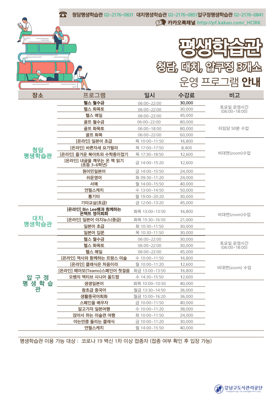 평생학습관 운영 프로그램 안내 드립니다. 첨부파일을 참고하여 주시기 바랍니다.