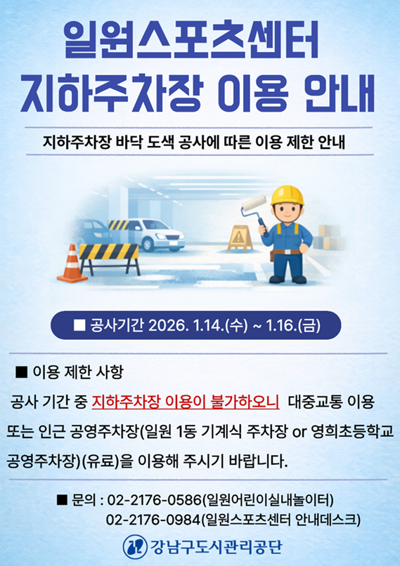 일원스포츠센터 지하 바닥 도색 공사에 따른 이용 제한 안내