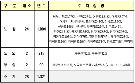 □ 무료개방 주차장 : 총28개소 1,321면