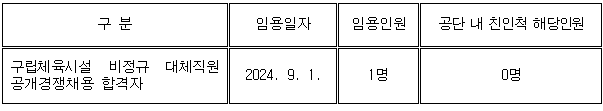구립체육시설 비정규 대체직원 채용직원 공단 친인척 현황공고(체육사업2팀)