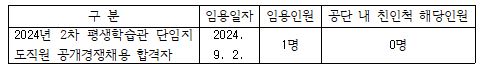 2024년 2차 평생학습관 단임지도직원 공개경쟁채용 합격자 공단 친인척 현황을 아래와 같이 공개합니다.