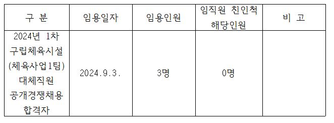 2024년 1차 구립체육시설(체육사업1팀) 대체직원 채용직원 대상 공단 친인척 현황 안내