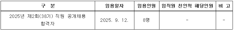 2025년 제2회(38기) 신규직원 대상 공단 친인척 현황 공개