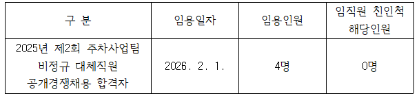 2025년 제2회 주차사업팀 비정규 대체직원 채용직원 대상 공단 친인척 현황 홈페이지 게시