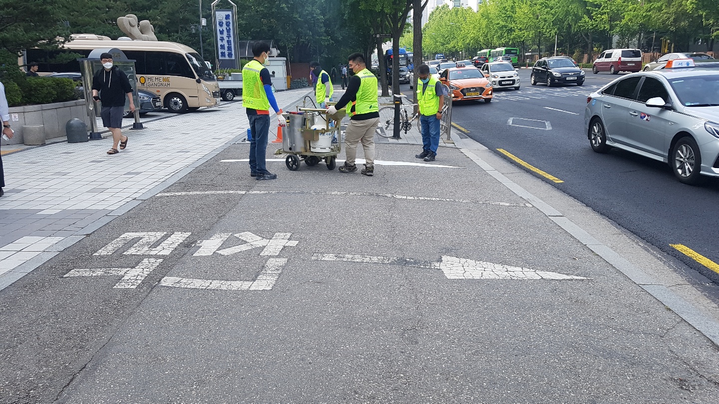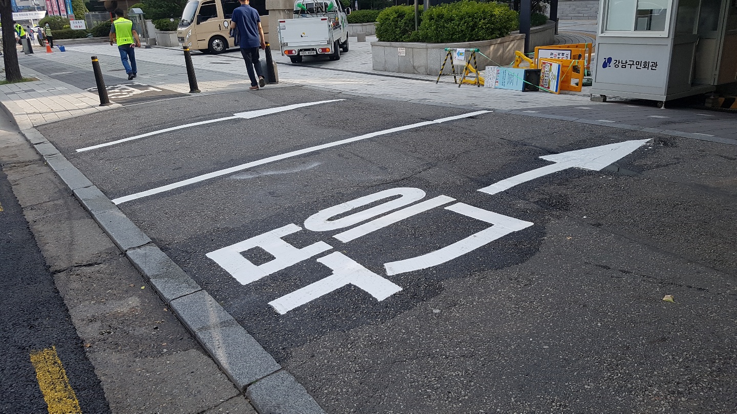 구민회관 차량 진출입로 도색실시