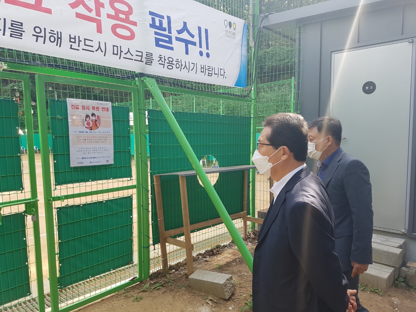공단 박병동 이사장은 금일 재개장한 봉은, 테니스장을 방문하여 지역주민과의 소통 및 코로나19 방역사항을 점검하였습니다. 또한 추석 연휴기간에도 근무하는 직원들의 노고를 격려하며 철저한 방역수칙 준수를 당부했습니다.