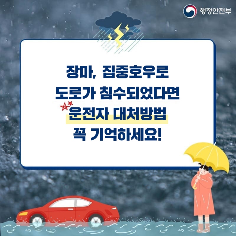 장마, 집중호우로 도로가 침수되었다면 운전자 대처방법 꼭 기억하세요!