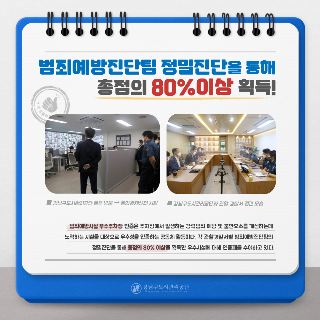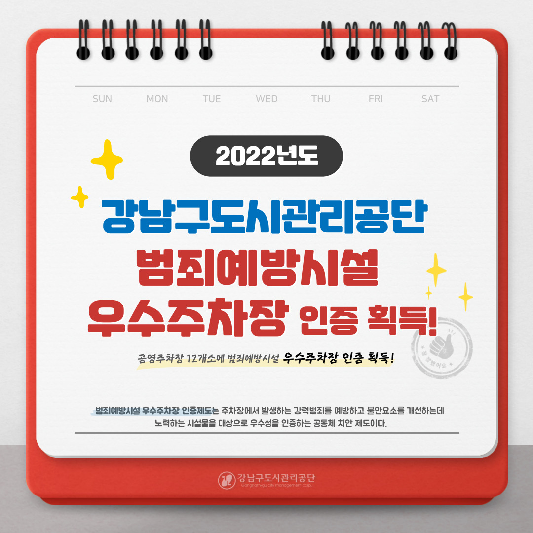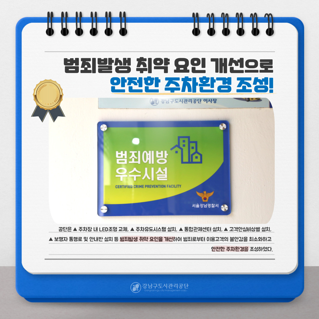 강남구도시관리공단, '범죄예방시설 우수자차장' 인증 획득!