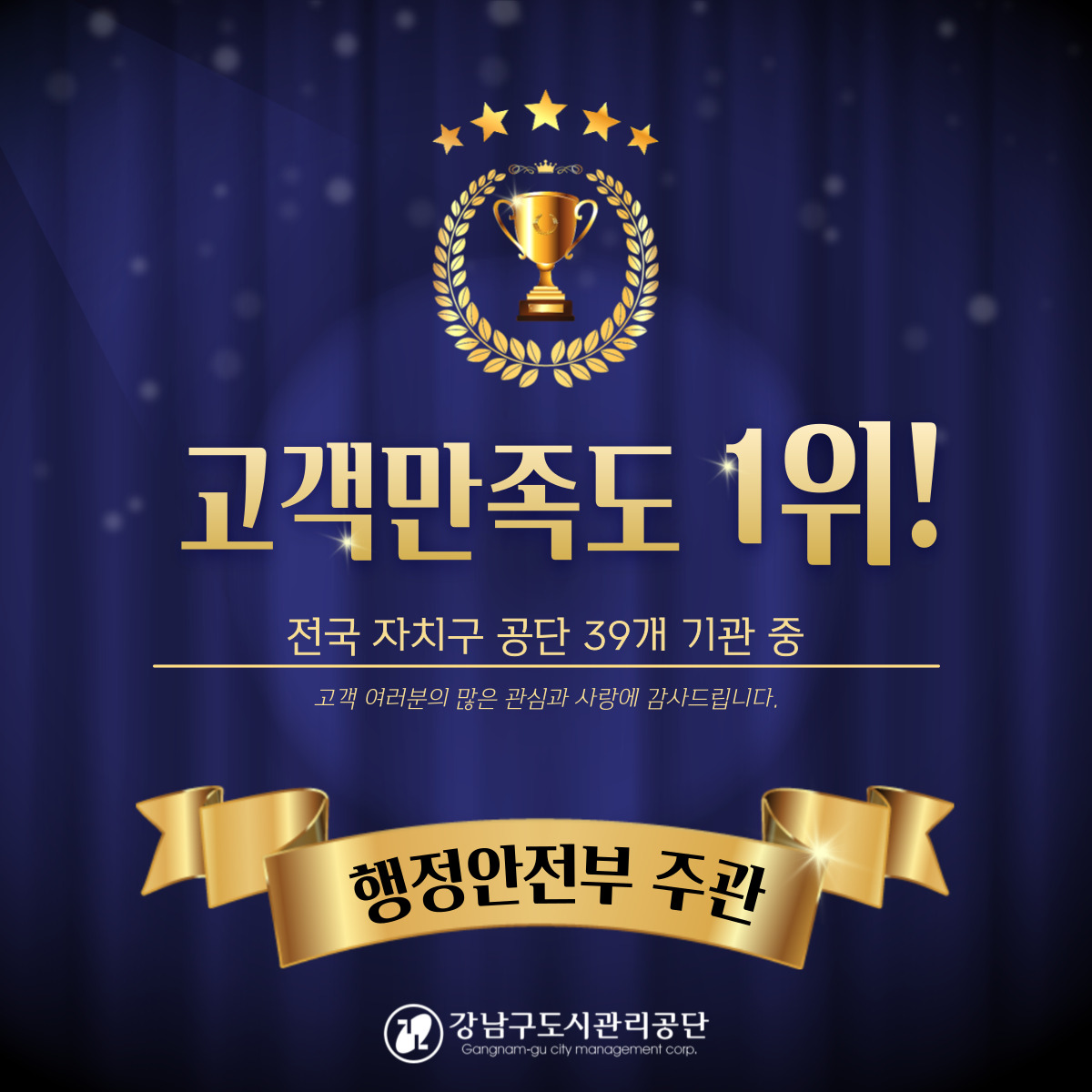 강남구도시관리공단, 행정안전부 주관 전국 자치구 공단 중 고객만족도 1위!