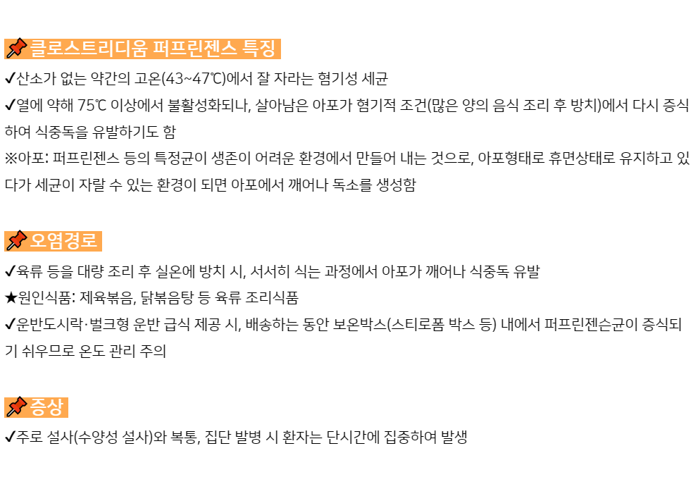 " 클로스트리디움 퍼프린젠스 식중독 주의 "