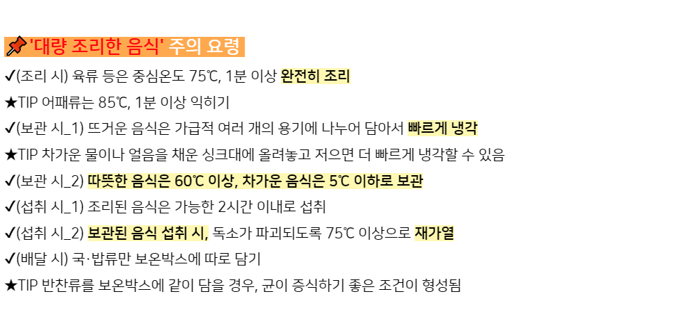 ※TIP : 반찬류를 보온박스에 같이 담을 경우, 균이 증식하기 좋은 조건이 형성됨