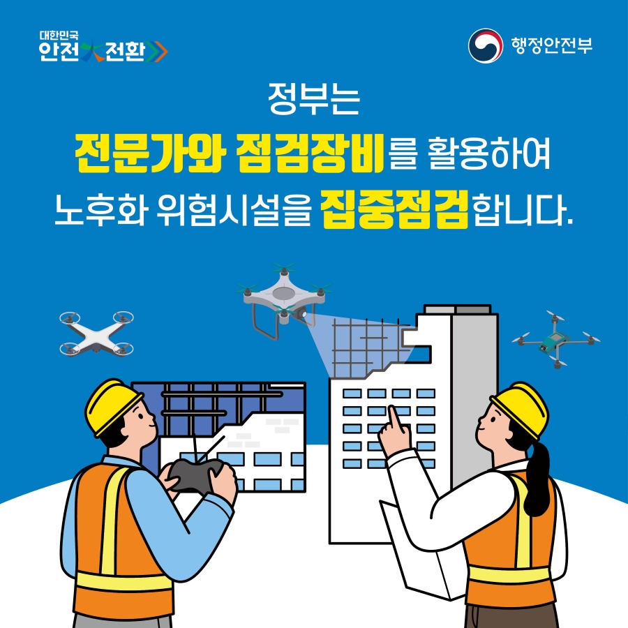 정부는 전문가와 점검장비를 활용하여 노후화 위험시설을 집중점검합니다.