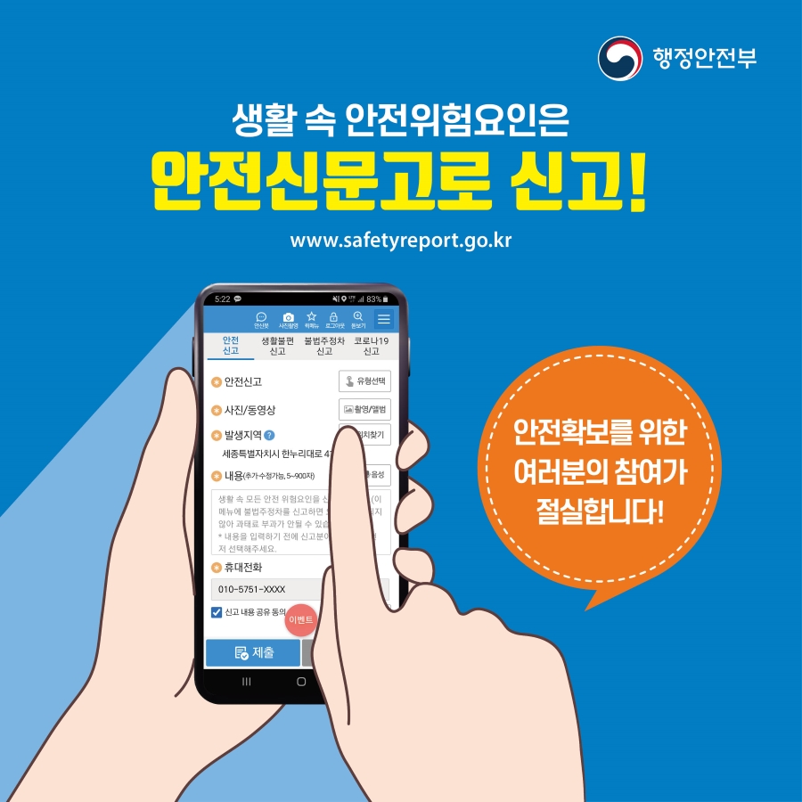 생활 속 안전위험요인은 안전신문고(클릭)로 신고!