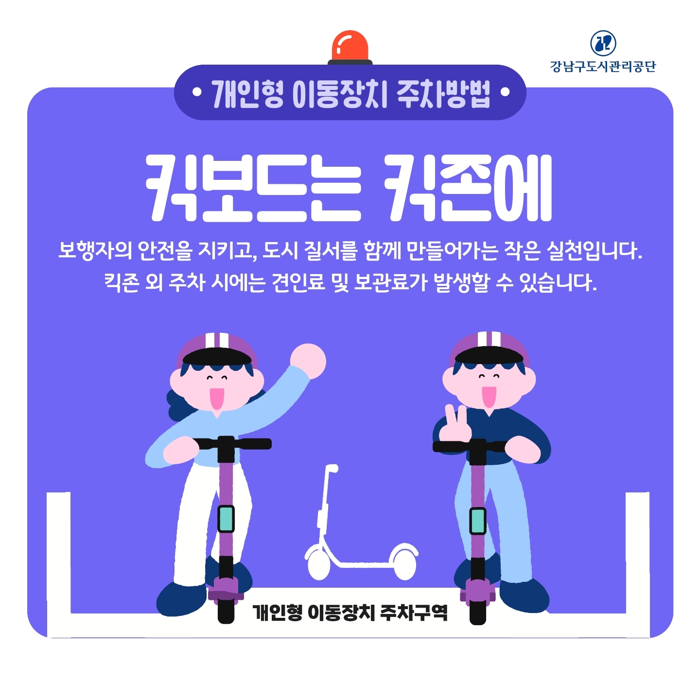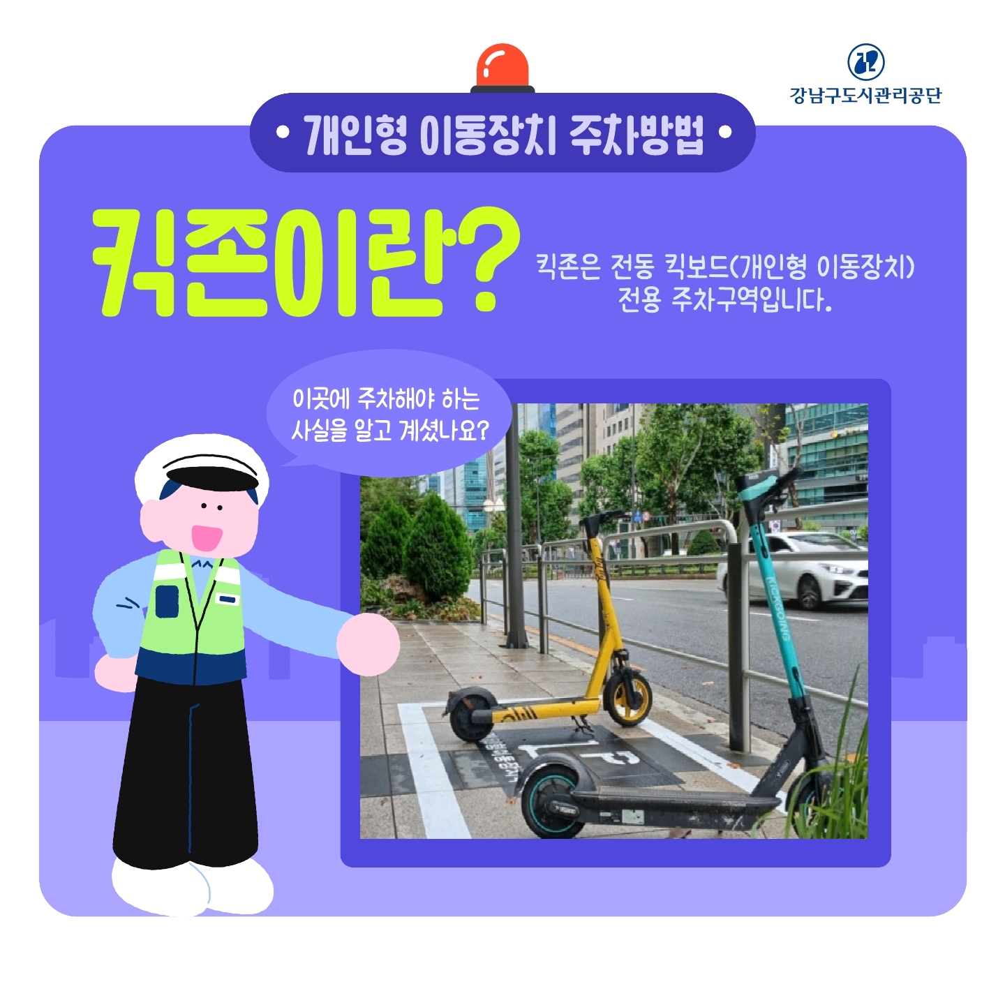 올바른 킥보드 주차방법! " 킥보드는 킥존에만 쏙"