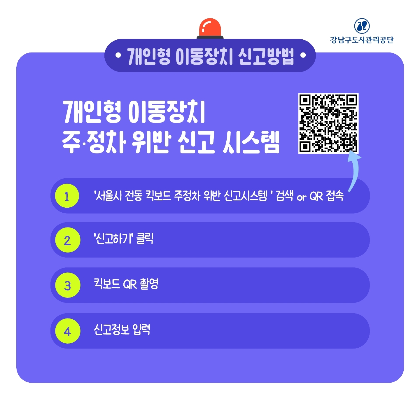 1. 서울시 전동 킥보드 주정차 위반 신고시스템' 검색 or QR 접속