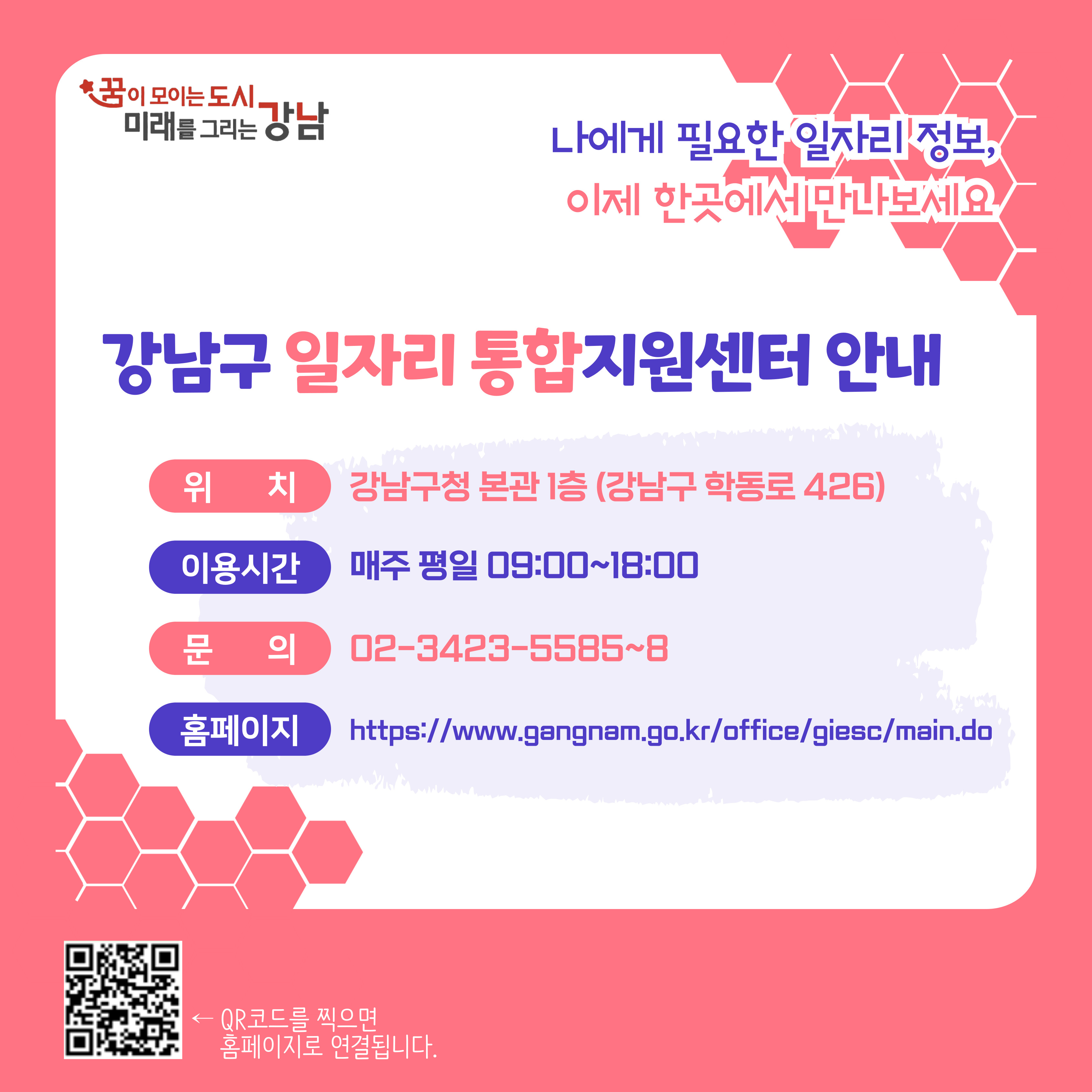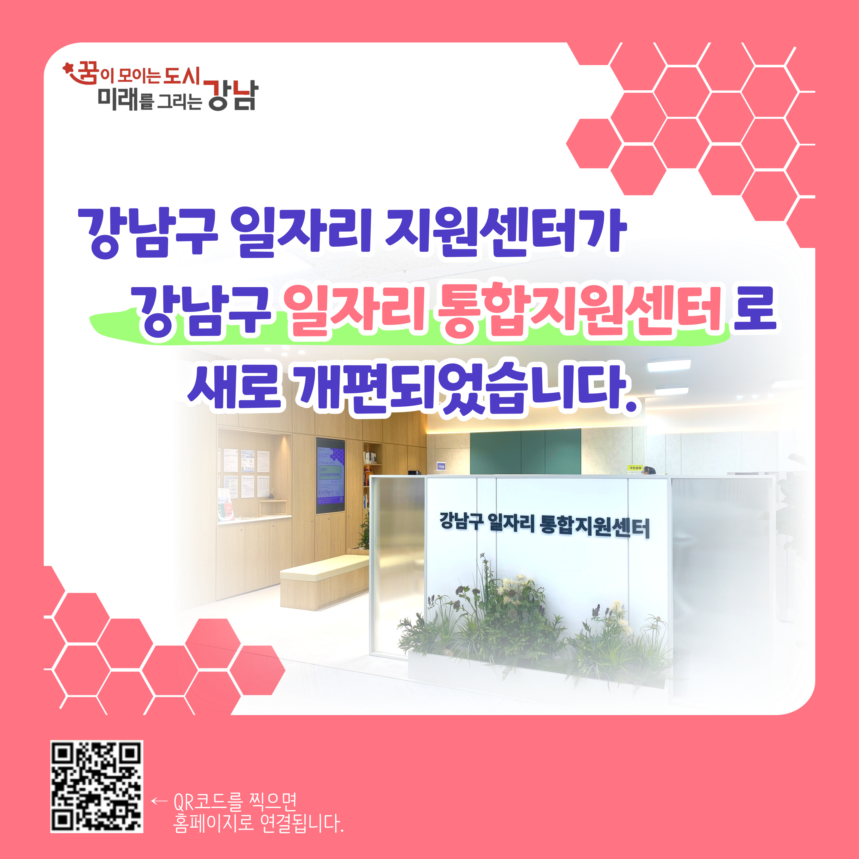 강남구 일자리 지원센터가 '강남구 일자리 통합지원센터'로 개편되었습니다.